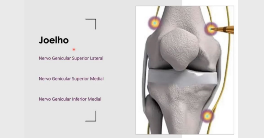 Quando a dor no joelho é intensa ou crônica e não responde a analgésicos comuns, uma alternativa eficaz são os bloqueios anestésicos. São aplicações guiadas por imagem (geralmente ultrassom) que injetam anestésicos e anti-inflamatórios próximos aos nervos que conduzem a dor, como:
